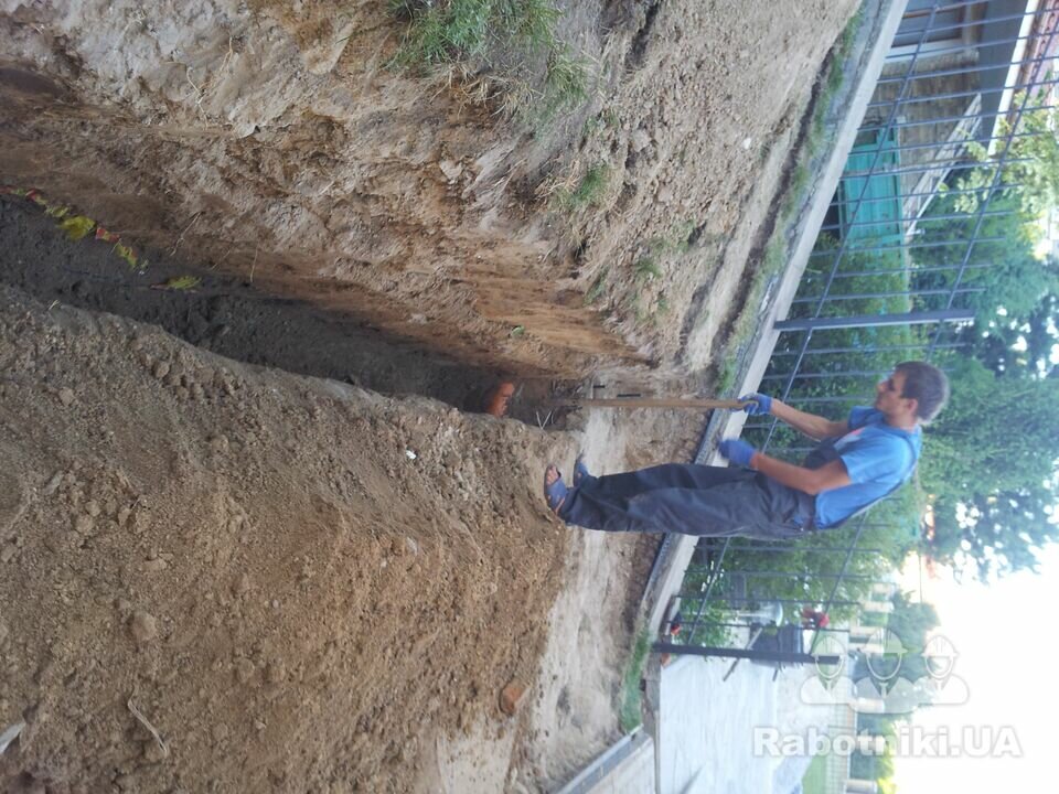 Разработка грунта и подготовка к заливки опорной стены , подготовка к монтажу бетонной лестнице.
