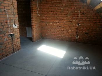 Выполнение работ по машинной стяжке пола. 200 м2 цементно-песчаной стяжки с армированием по теплому полу. Частный дом, с.Гореничи, Киевской области