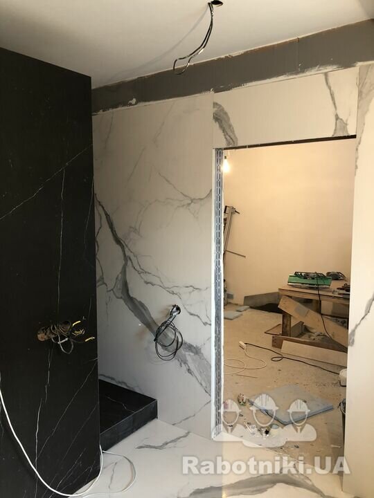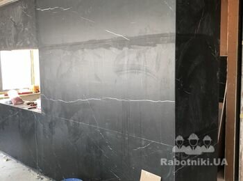 Облицовка крупноформатной плиткой 2,4*1,2м в квартире