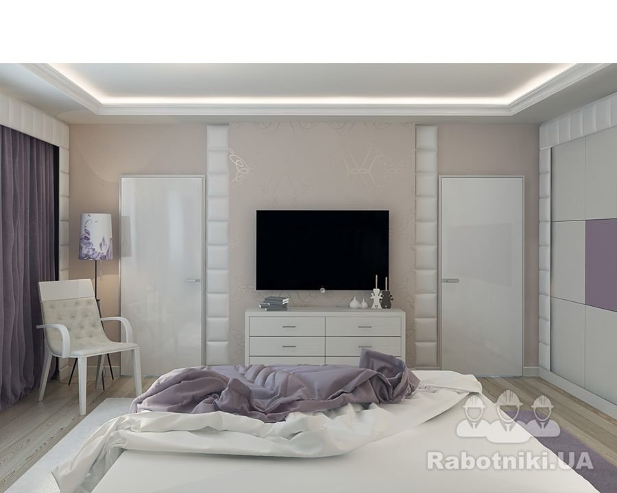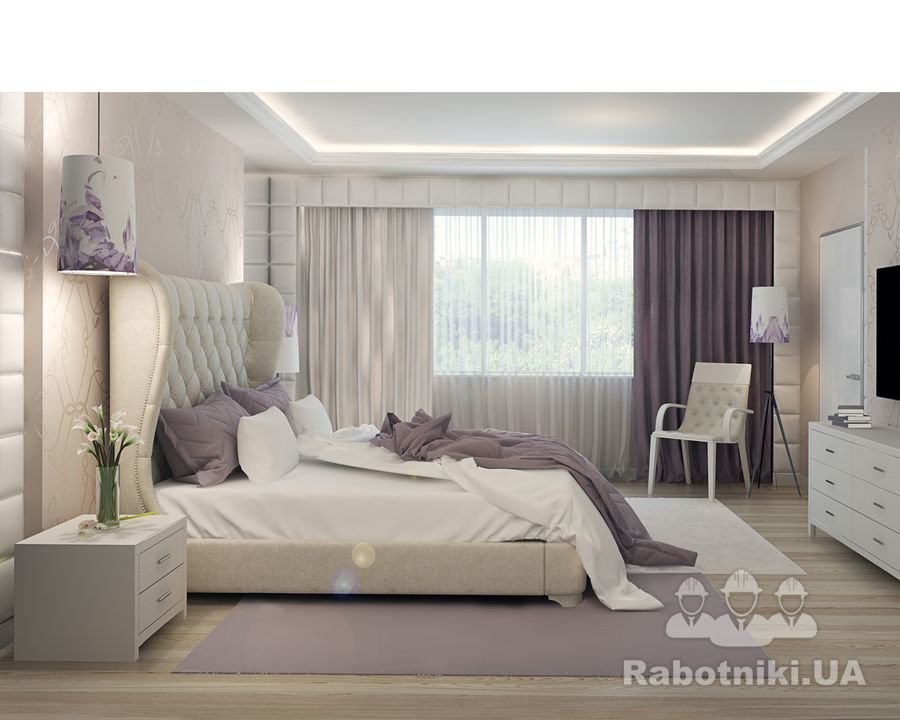 Роскошный интерьер от KaSo studio наполнен легкостью и свежестью. Он соответствует всем современным тенденциям, новым технологиям. В этой элегантной спальне используются исключительно натуральные материалы: мебель — из натурального дерева, паркетная доска, натуральные обои, гипсовый декор и т.п.