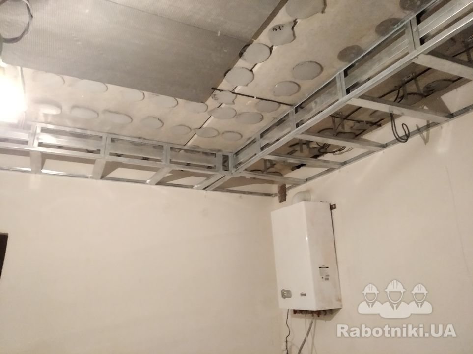 Монтаж гипсокартонного короба под французские потолки со скрытым карнизом.