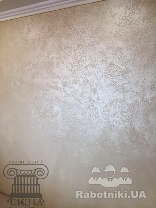 Стійке до царапин покриття. У вартість робіт входять усі декоративні матеріали придбані у Салоні декору Сієна , обклейка малярною стрічкою поверхонь, ґрунтування, нанесення фінішу