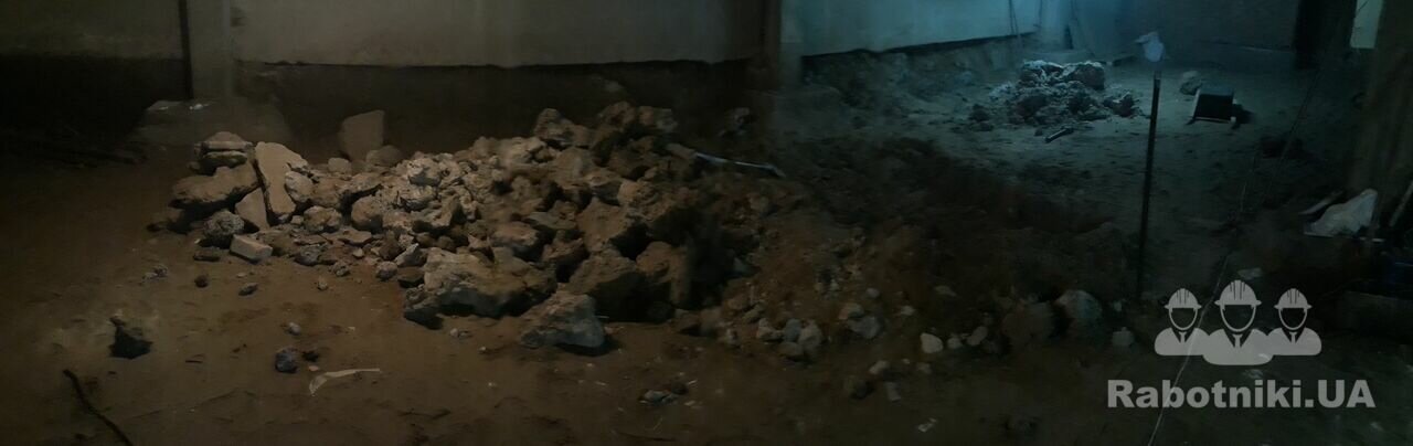 Углубление на 40см. на площади 650м.кв. более 350 тонн вручную.