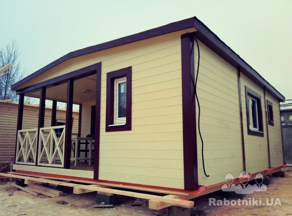 Лучший выбор дачных домиков в Украине! Предприятие "КаркасБуд" изготавливает и реализует с доставкой по Украине, а также самовывозом, домики каркасного типа "под ключ", различных моделей и модификаций.Наши домики пригодны для круглогодичного проживания. Общее описание: тип конструкции - каркасная, утепление - минеральная вата 100мм, наружная отделка - блок хаус, внутрення отделка - OSB плита 10 мм + деревянная вагонка, доска пола35 мм, крыша - профнастил, металлопластиковые окна, металлические или деревянные двери, электрика "под ключ". Доставка. Профессиональный монтаж. Срок изготовления - от 14 дней (возможно изготовление по проекту заказчика) . Более подробная информация по телефону