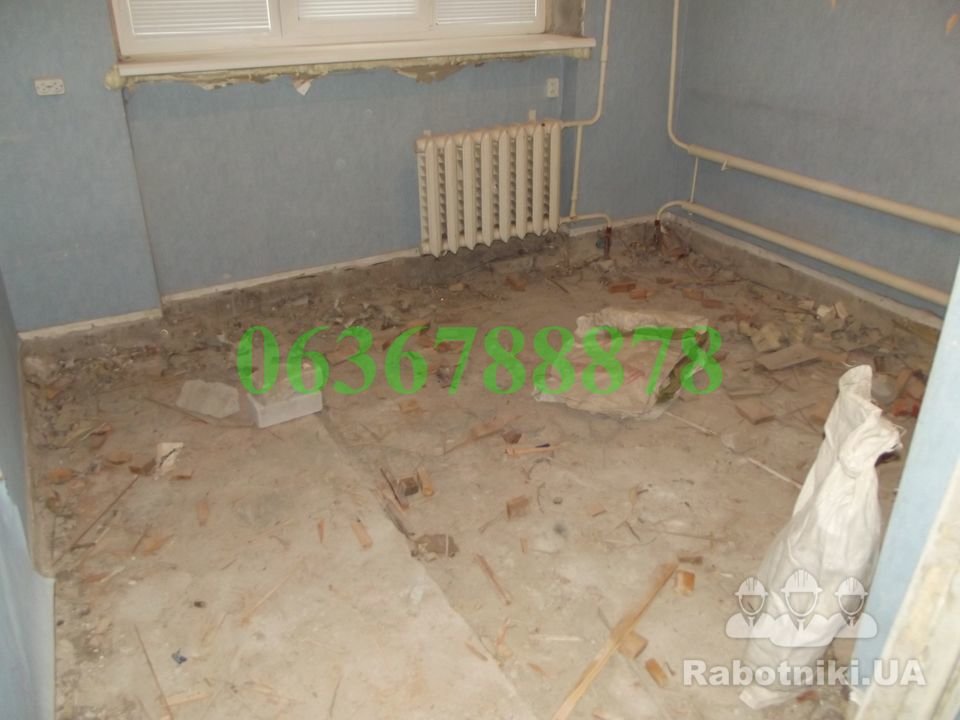 Демонтажные работы , вывоз мусора и закупка материала.