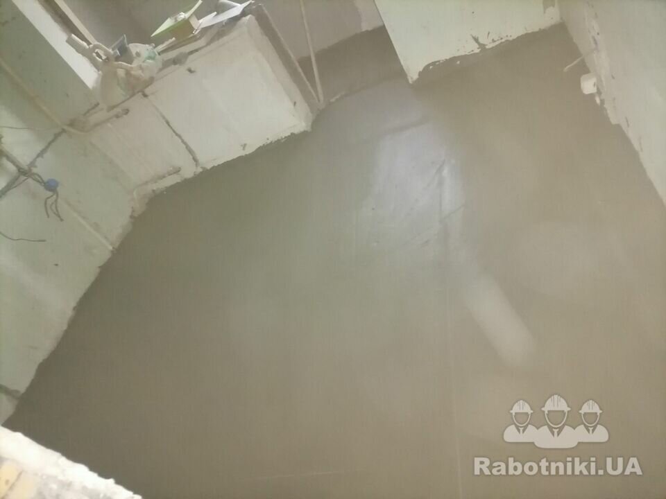 Заливка пола цементно-песчаной стяжкой с отсевом.