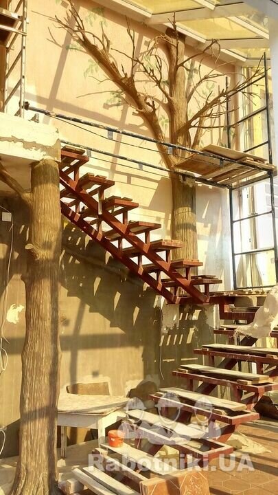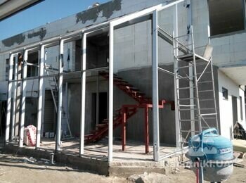По желанию заказчика должен быть использован уже существующий фундамент + объединение будущего строения с уже рядом стоящим. На основании обследования фундамента было принято решение строить монолит - из несъёмной опалубки- термоблока. На фото видно решение по межэтажному перекрытию, - облегчённая монолитная плита с помощью той же технологии термоблок. Так же была в процессе добавлена оранжерея, крытая мангальная зона и бассейн. Все работы (от проектирования и расчётов до отделки и ландшафта) выполнялись нашим коллективом. Отдельно хочу акцентировать на моменте "деревьев" в оранжерее: они рукотворные. Пишите, звоните, - буду рад сотрудничеству.