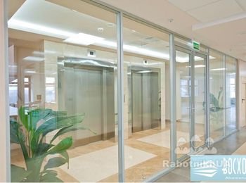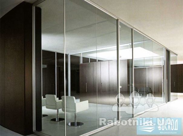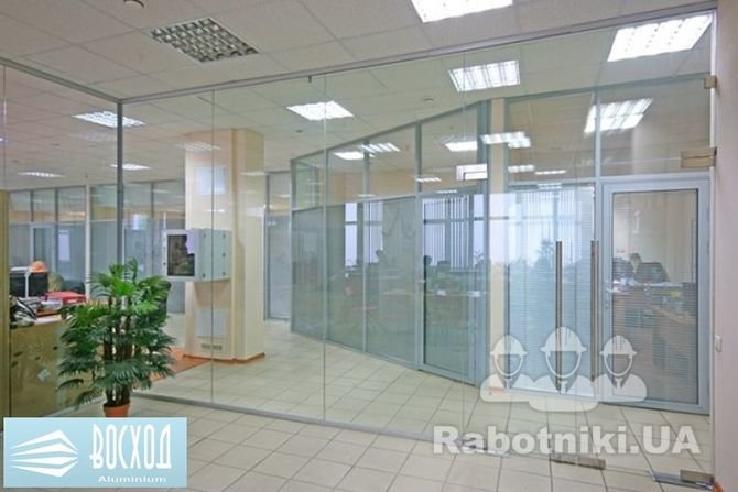 Предлагаем изготовление и монтаж стеклянных, офисных перегородок. На Ваш выбор перегородки могут быть каркасные с использованием алюминиевого профиля и бескаркасные, представляя собой цельностеклянные модули от пола до потолка, с нанесением рисунка, матированием, тонированием или без.