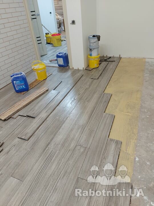 Укладка малазийской экзотической паркетной доски на стяжку и установка плинтуса.