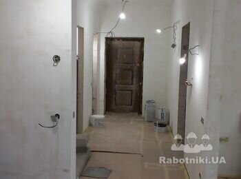 Підготування стін, стелі, укосів під фарбування - виправлення дефектів малярних робіт попередним майстром (шліфування, прибирання пилу, грунт, нанесення акрилової шпаклівкі під фарбування, шліфування, видалання пилу, грунт, безповівітряне фарбування - нанесення влагоізолюючої фарби, фінішна фарба в 2 шари).