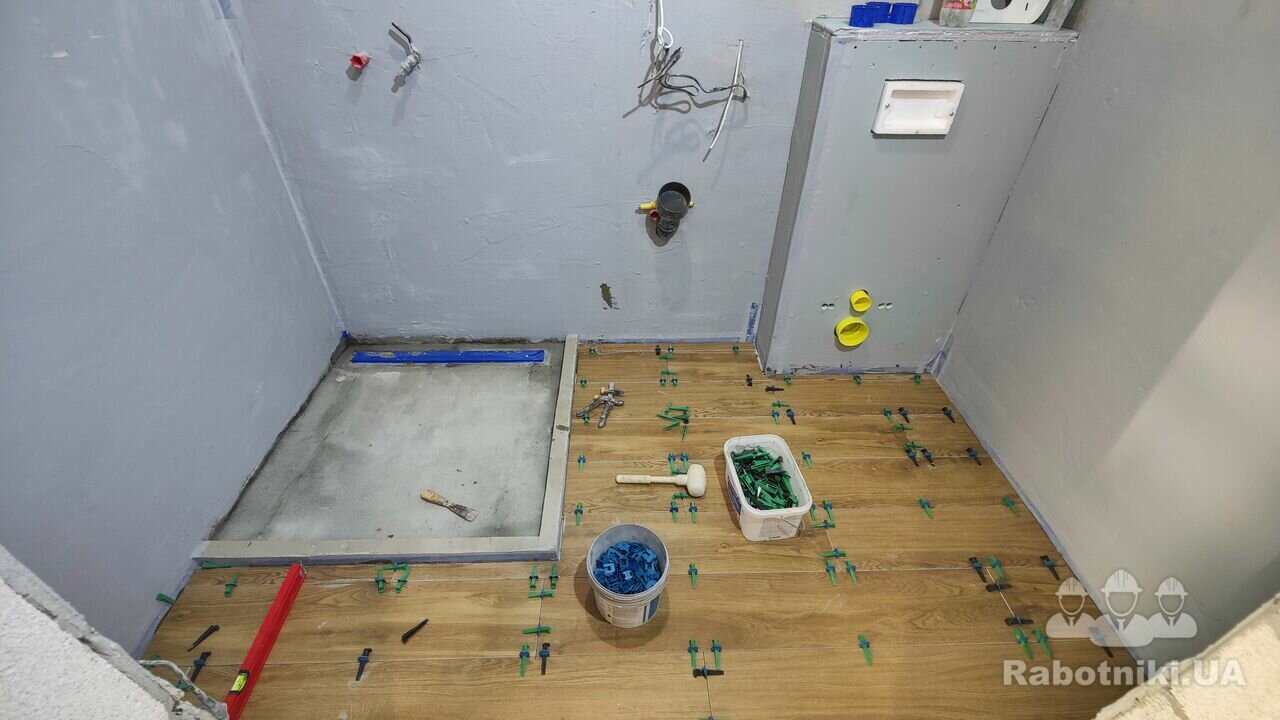 Підлога всієї квартири та душпіддон плитка 20/1200. Стіни с/в 60/60