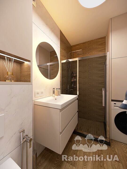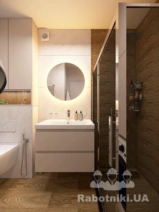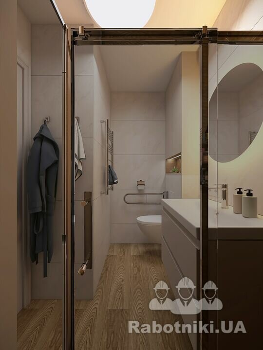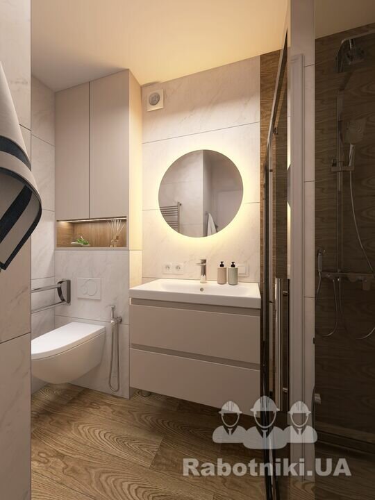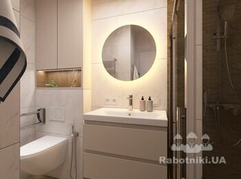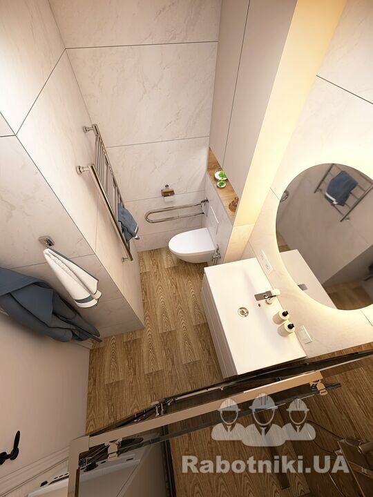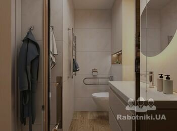 Дизайн санвузла в ЖК Молодість, м. Ірпінь. Розробка креслень 3D візуалізації 3D відео огляд технічний та дизайнерський нагляд комплектування матеріалами Ірпінь, Буча, Київ