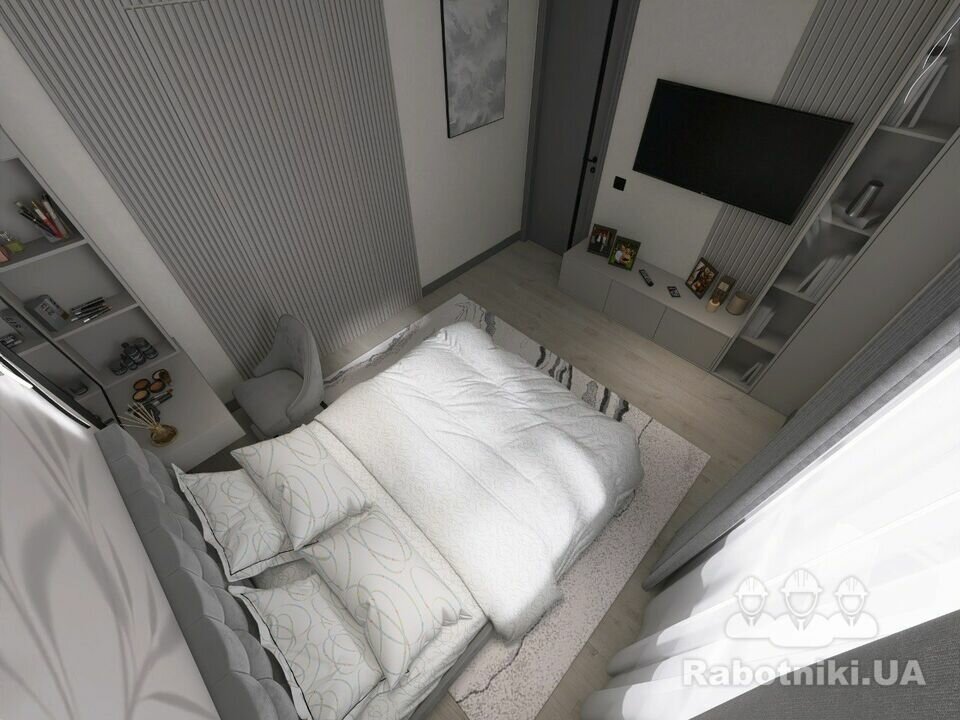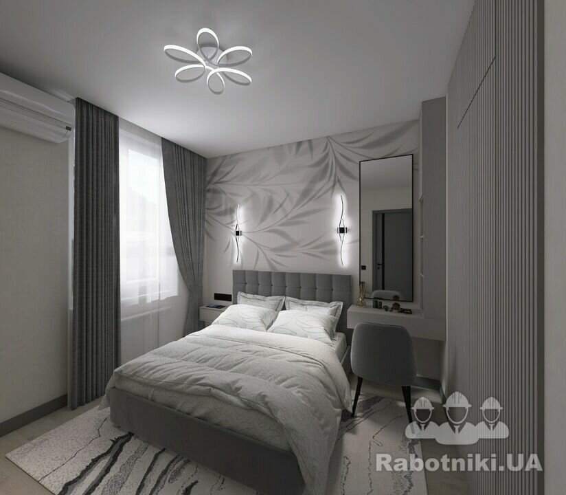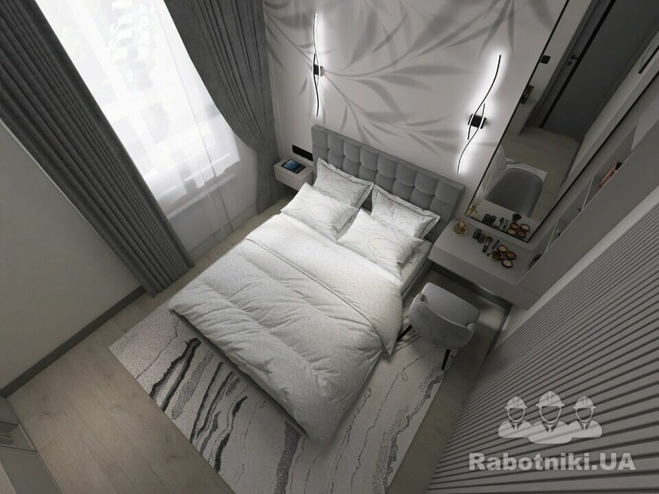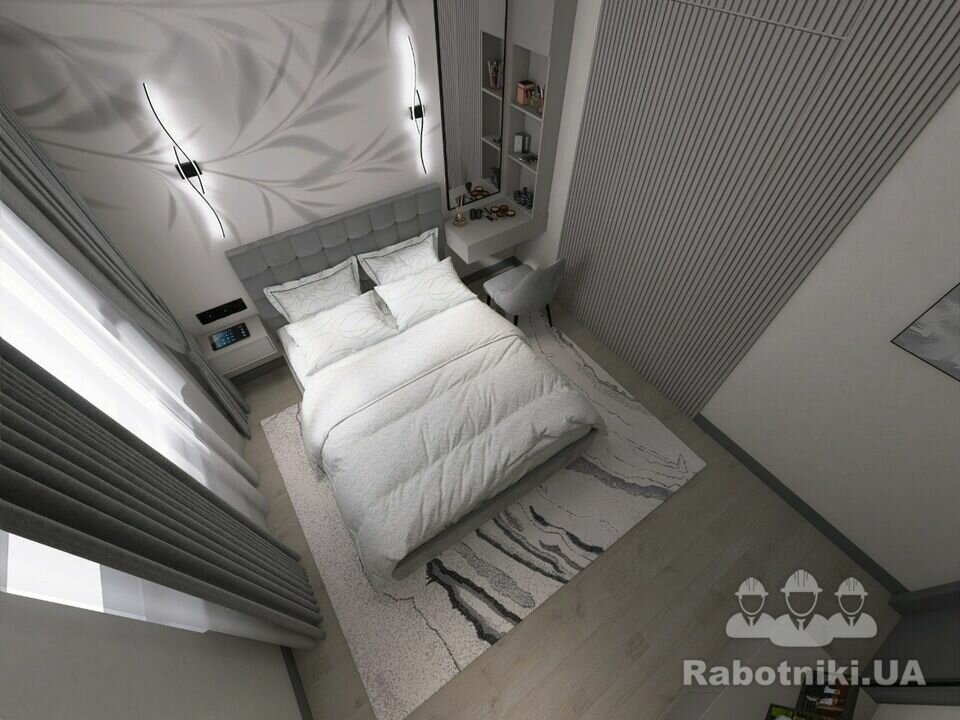 ЖК Сіті парк, м. Ірпінь. Дизайн інтерєру спальні. Розробка креслень 3D візуалізації 3D відео огляд технічний та дизайнерський нагляд комплектування матеріалами Ірпінь, Буча, Київ. 0962878797 Катерина