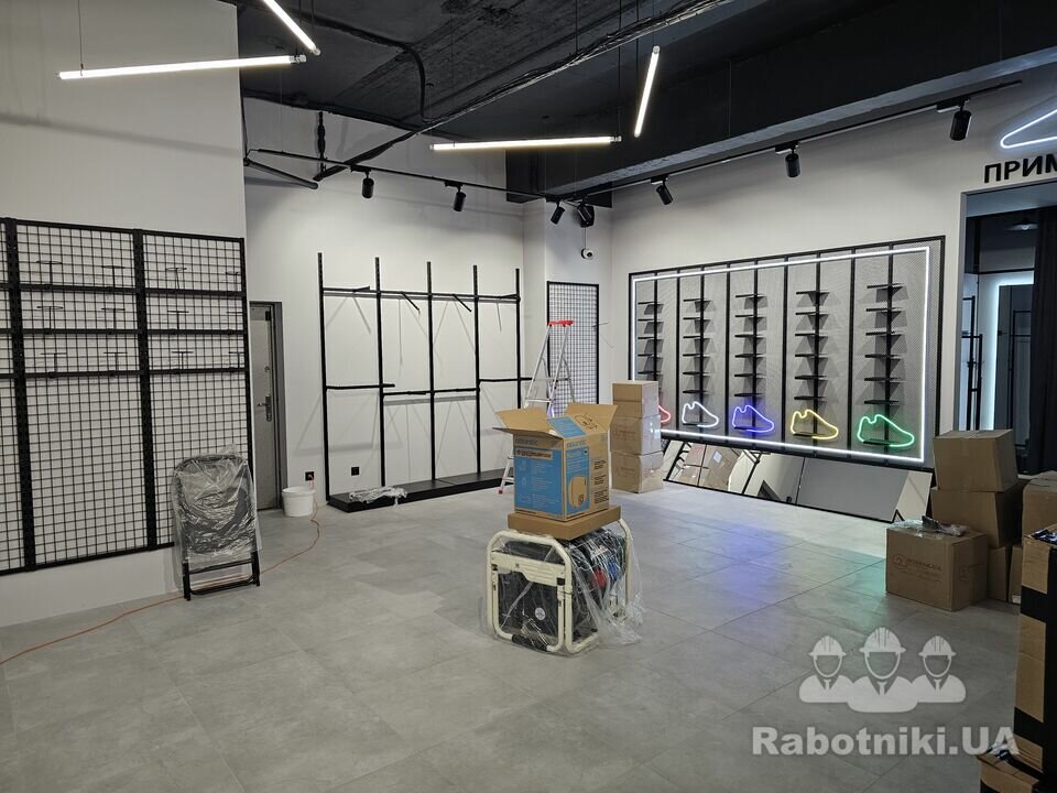 Виконали комплексний ремонт приміщення. Демонтували приміщення після банку та за 2 місяці провели повну реконструкцію за проєктом.