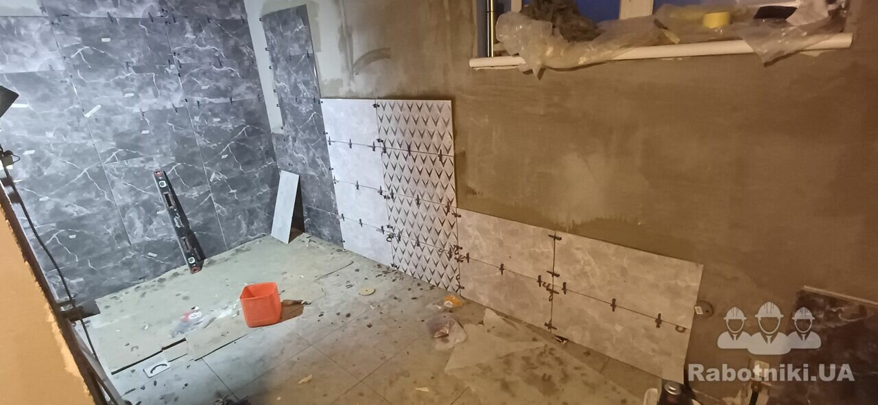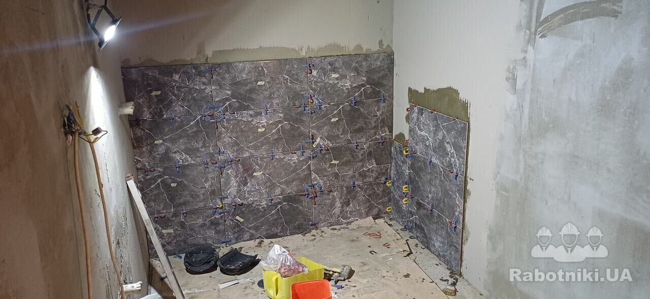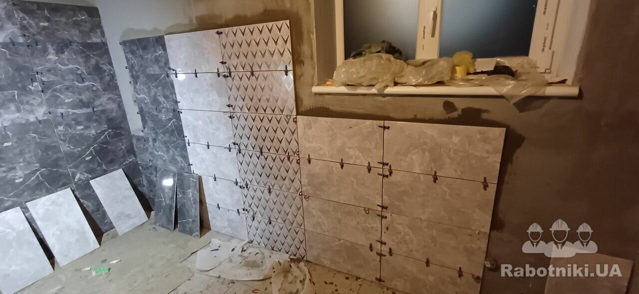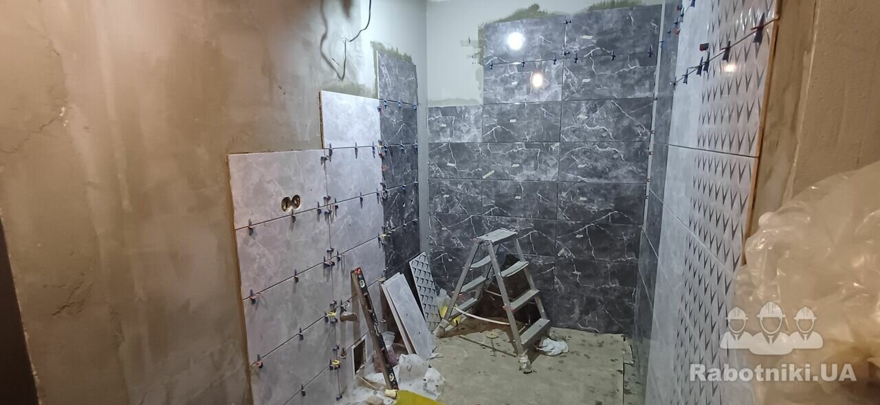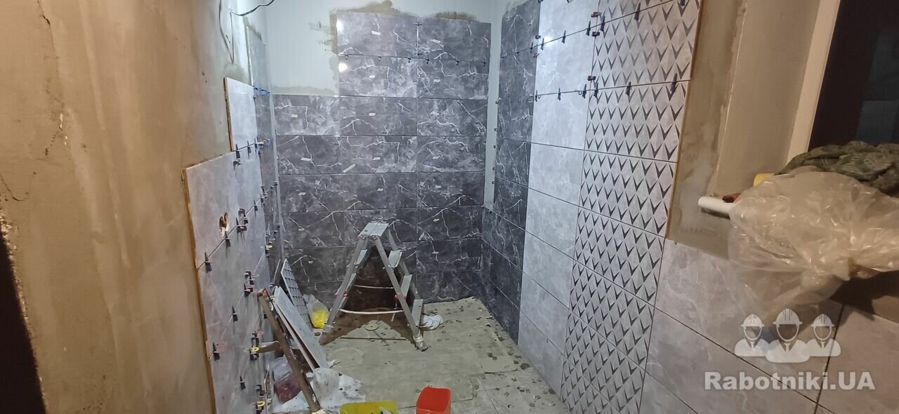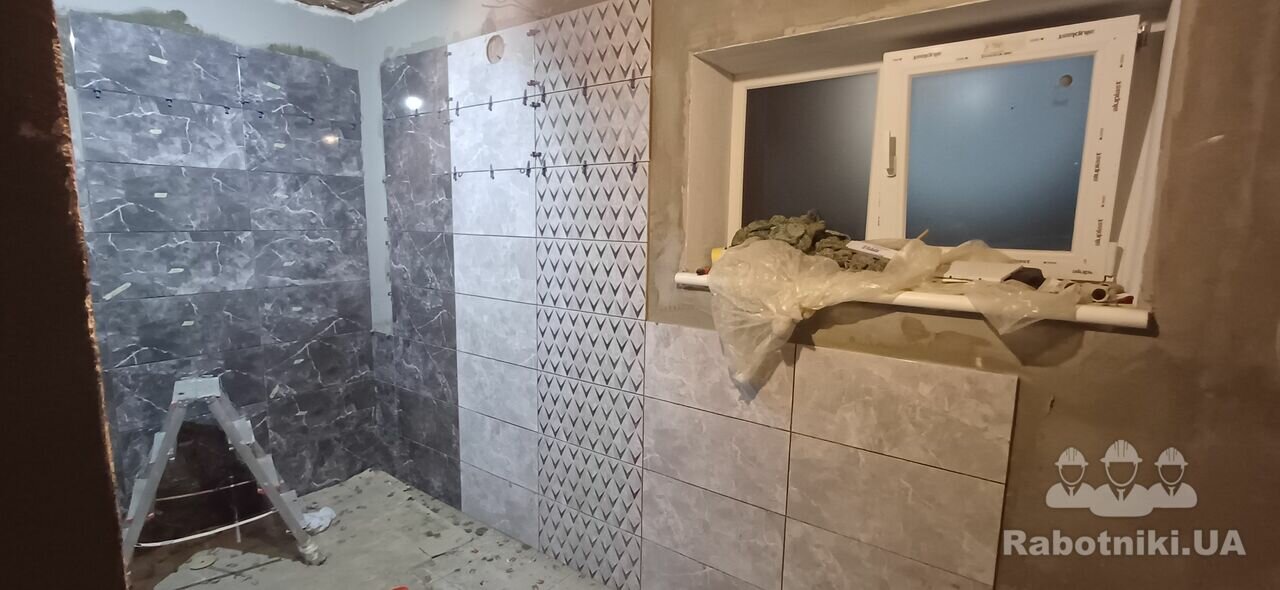 Облицювання санвузла керамічною плиткою загальною площею вкладання 60м2.