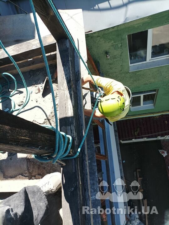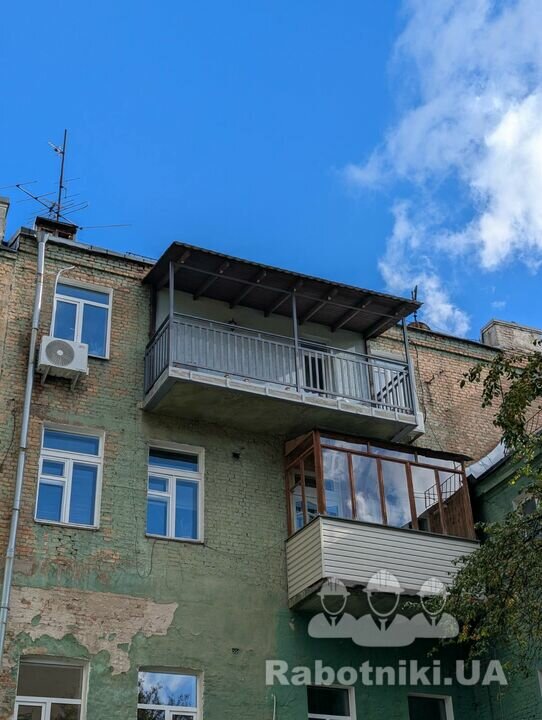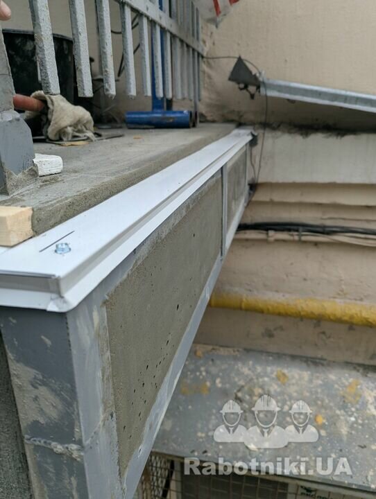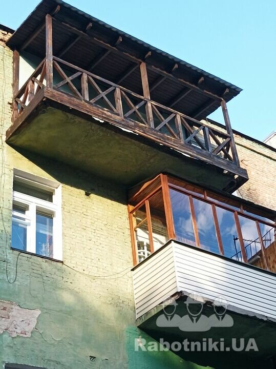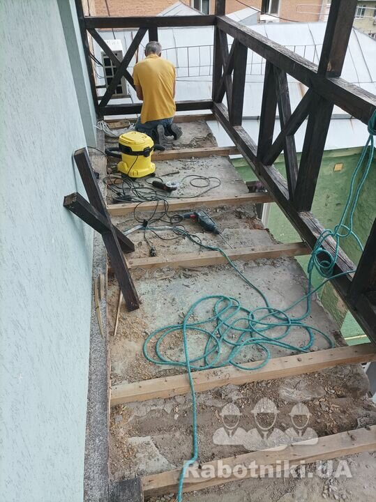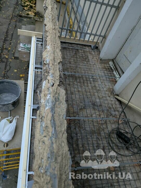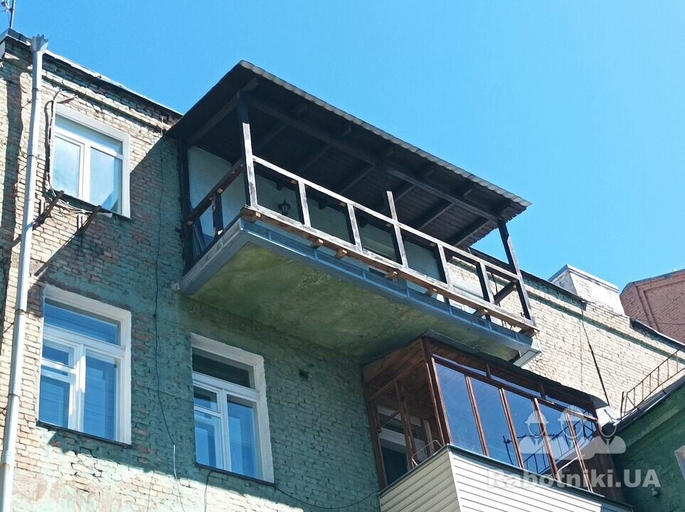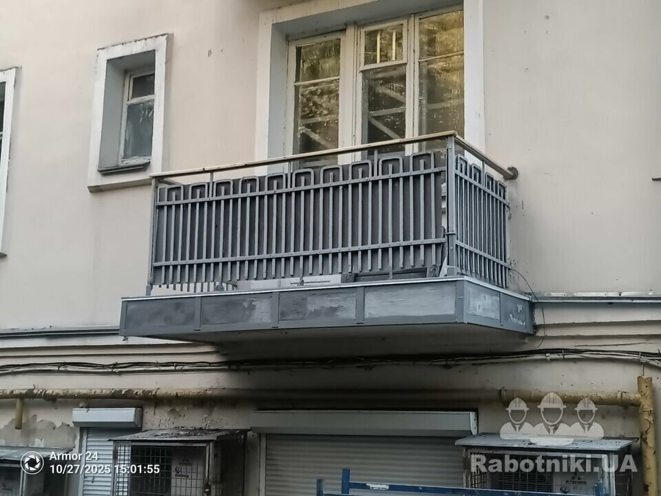 В старому житловому фонді, особливо в центрі Києва балкони в жахливому стані! Більшисть аварійні! Звісно, ім же стільки років! Мабуть робили ці балкони після Другої світової, і в бетон, замість щебню добавляли биту цеглу. Тоді такого матеріалу було вдосталь. Але, з огляду на те, що цегла набирае в себе воду, металевий каркас балконної конструкції геть проїржавів. Зокрема арматура від іржі розбухла, і порвала бетон. Стяжка розсипається, кути обвалюються, огородження висять в повітрі. В першу чергу страждають края балконної плити. Треба терміново ремонтувати. На фото показано як ми це робимо.