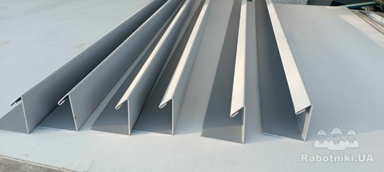 Приклади кутиків, планок та інших нестандартних виробів, які ми вирізали та зігнули за кресленнями наших клієнтів. Тут представлені готові елементи з ПВХ-, ТПО- та ПЕ-металу, що демонструють точність виконання та високу якість гнуття. Надихайтеся та замовляйте вироби за власними розмірами!