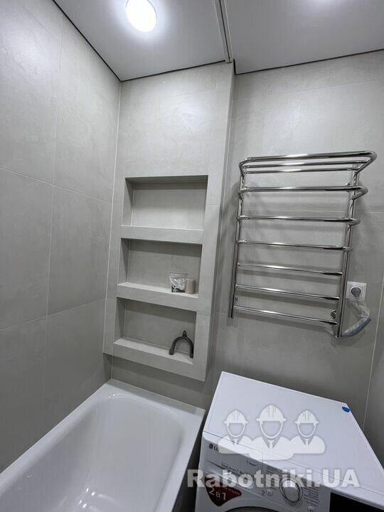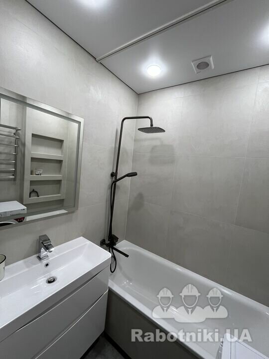 Виконали работи під ключ теплі поли,укладка кафелю, ламінату ,натяжні стелі поклейка обоев і т.д