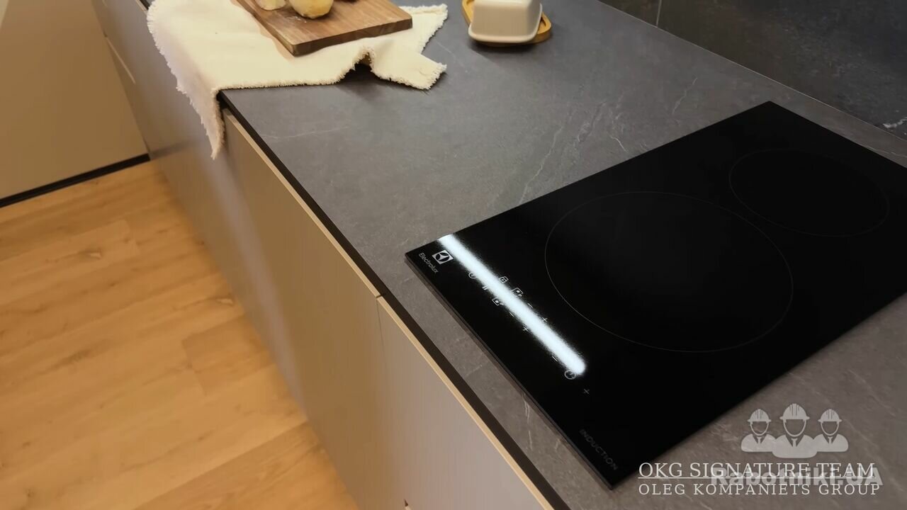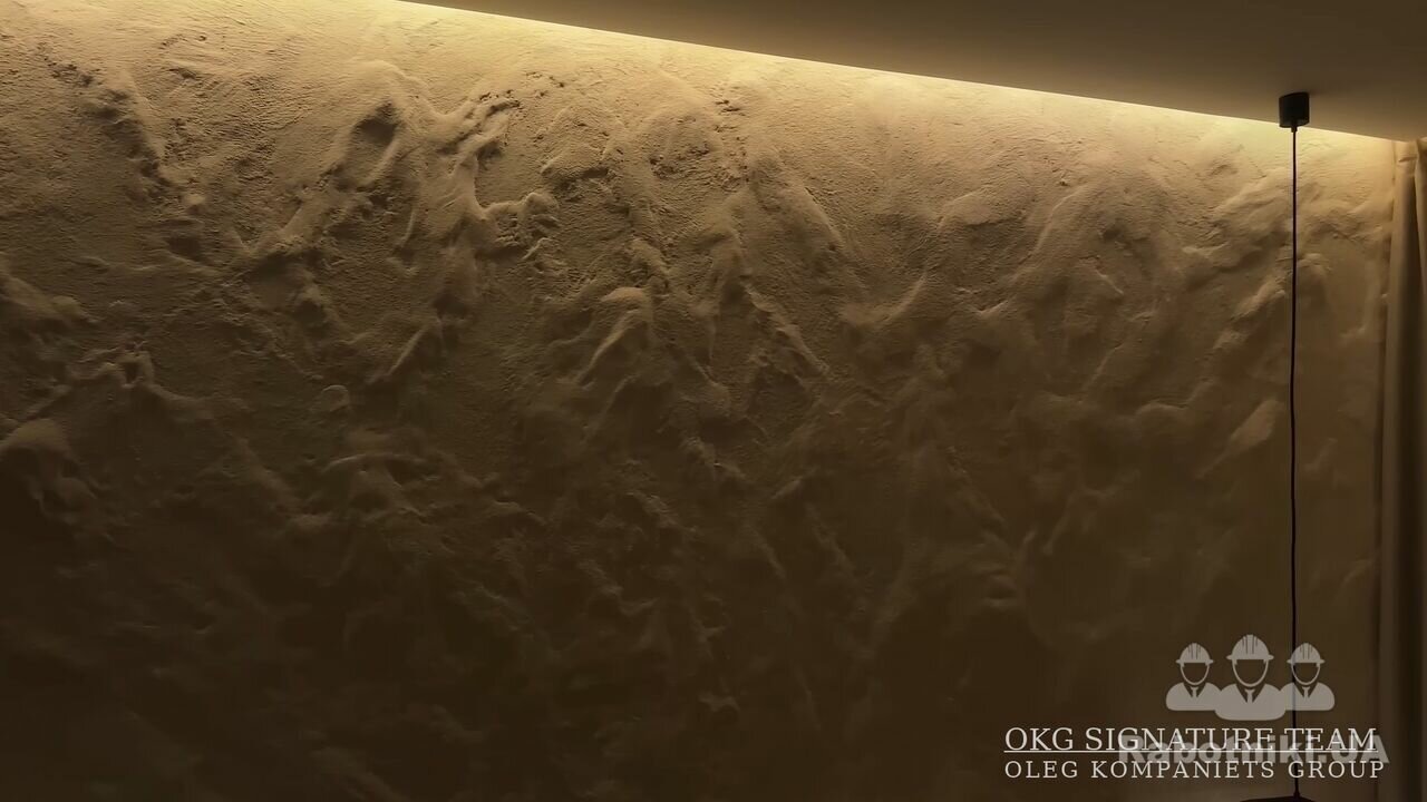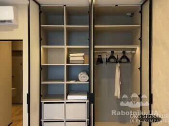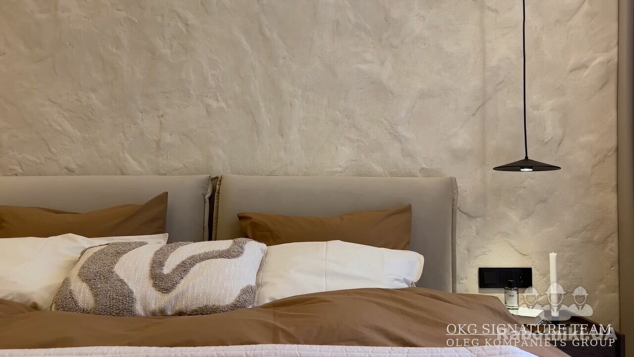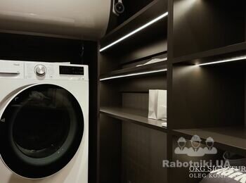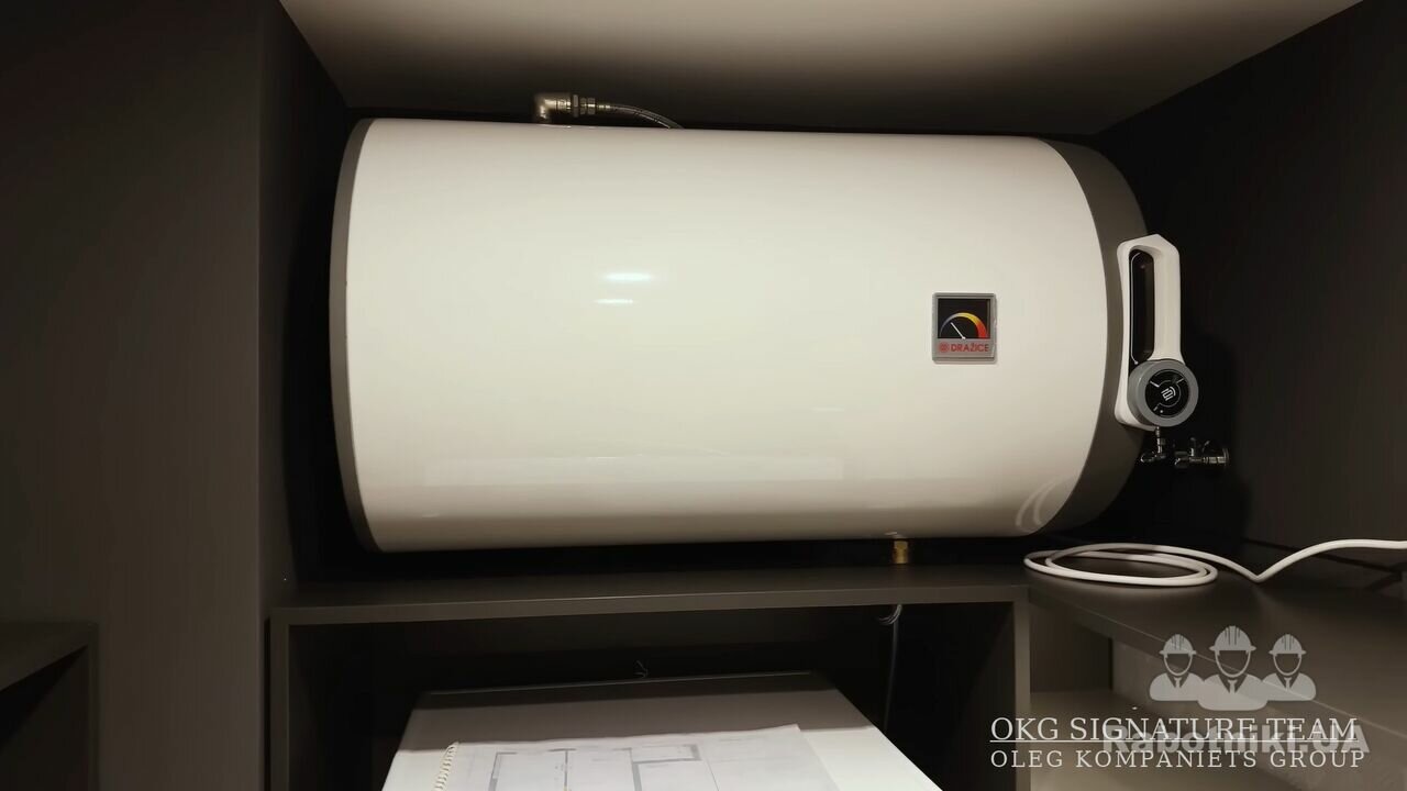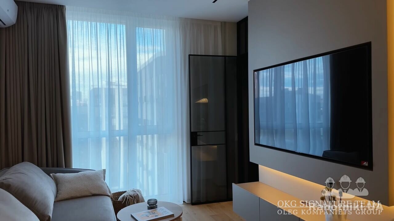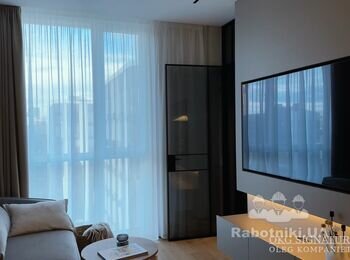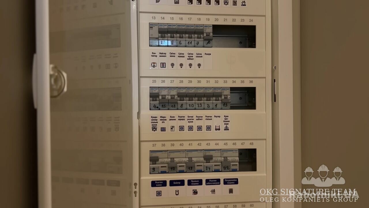 Сучасний мінімалізм у теплій нейтральній палітрі з акцентом на чорну фурнітуру та графітові деталі. Простір продуманий до дрібниць: вбудовані шафи, приховані системи зберігання, інтегроване підсвічування полиць і ніш. Санвузол виконаний у темному камені з матовою сантехнікою, інсталяцією, тропічним душем та продуманими інженерними рішеннями (бойлер, фільтрація води, електрощит з маркуванням груп). Якісні матеріали, чітка геометрія, акуратні стики та технічна грамотність інтерєр, який поєднує естетику та функціональність. Робота виконана під ключ командою OKG SIGNATURE TEAM.