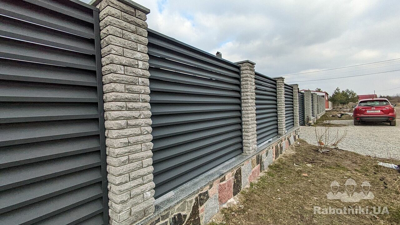 Паркани з цегли та з профнастилу