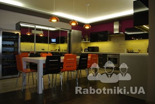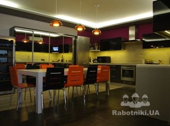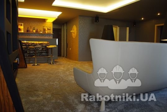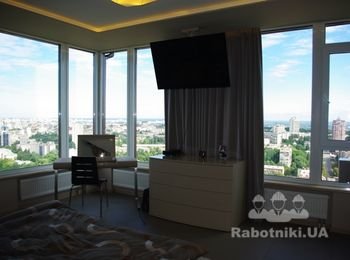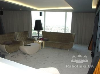 Квартира класса люкс в центре Киева. 249 м.кв., 25 этаж , 6 комнат ( квартира разделена на 2 части. 1 часть для прислуги и детей , а вторая для хозяйвов. Запотолочный свет по всему периметру,гидро подогрев полов. Хозяин остался очень доволен качеством ремонта и его стоимостью.