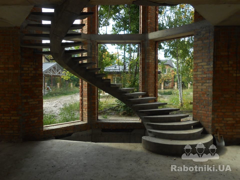 Мы изготавливаем бетонные лестницы на заказ по Киеву и области. Строительство винтовых монолитных и железобетонных лестниц для дома на заказ – вот основное направление нашей деятельности. В последние годы большинство застройщиков все больше внимания оказывают бетонным лестницам. И это не случайно: красивая и надежная бетонная лестница придает дизайну помещений неповторимый и превосходный вид. Лестницы из бетона это уникальная архитектурная форма, совмещающая в себе красоту и функциональность,