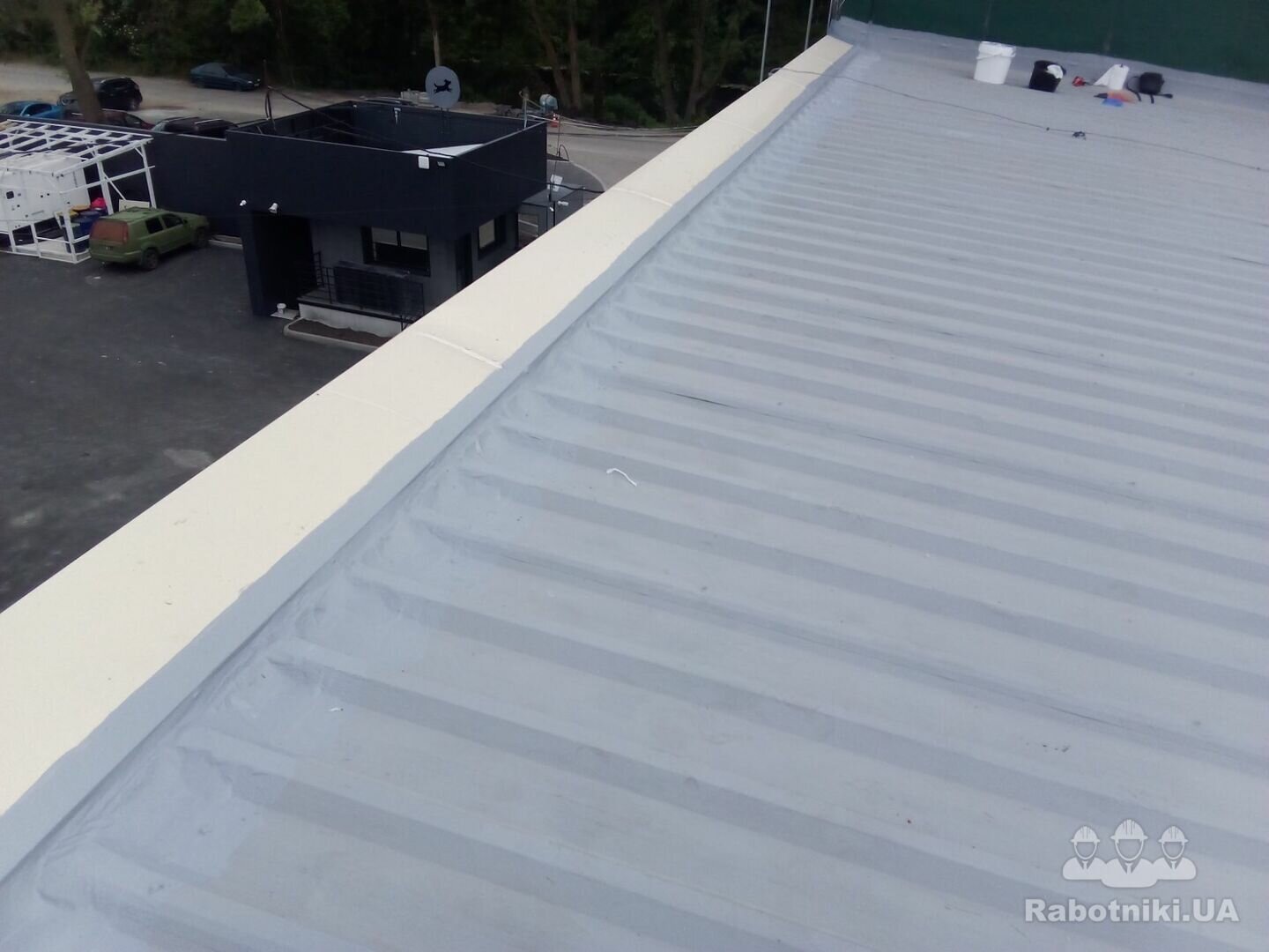 Потрібно напаяти у водостічний жолоб шириною 1 м. Єврорубероїд +- 150 м2 та змонтувати профнастил 110 м2
