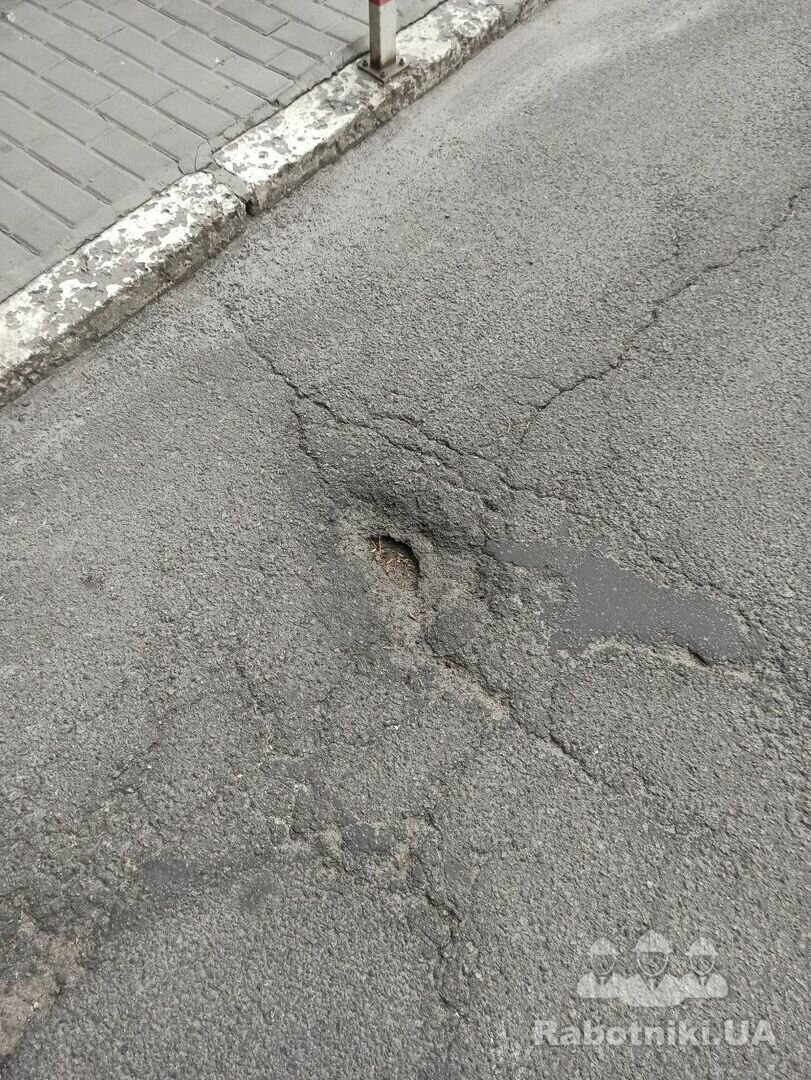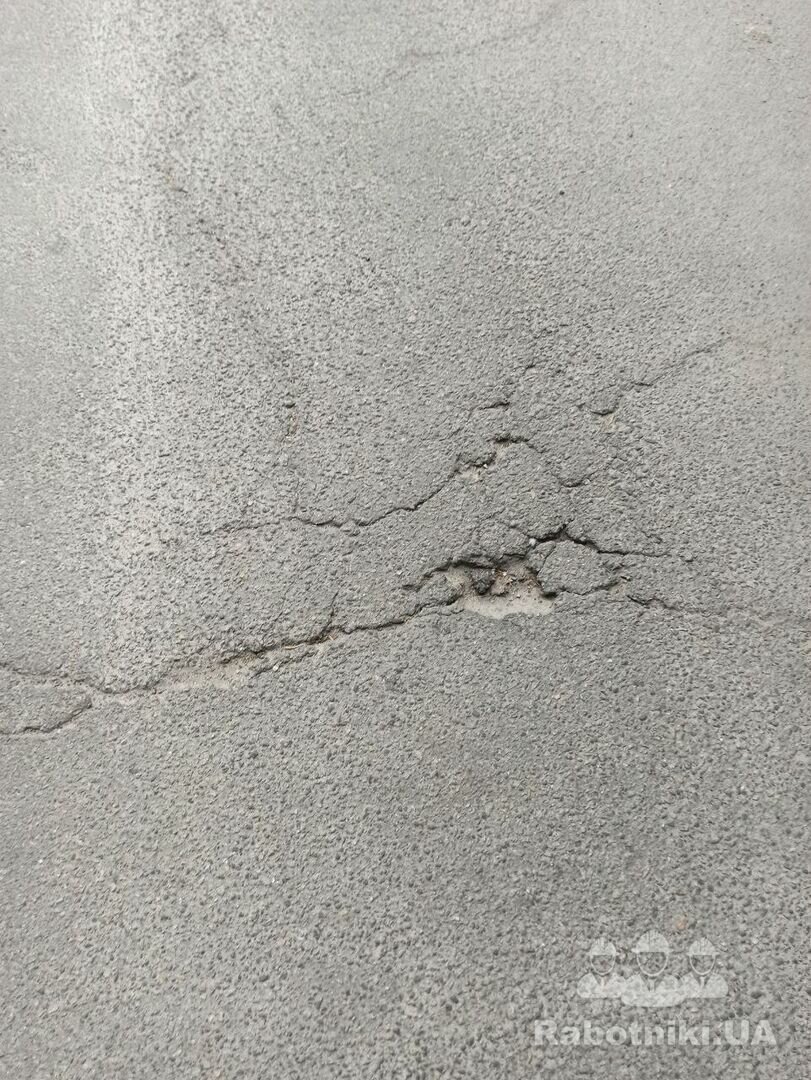 Потрібно виконати ямковий ремонт асфальтобетонного покриття. Попередньо виконати обрізку країв асфальту. Потім обробити бітумом. Надалі використовуючи холодний асфальт та трамбовку виконати асфальтування. Загальна площа складає 1,2 м.кв.
