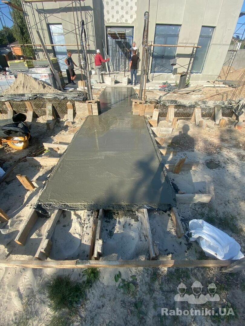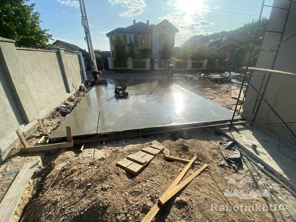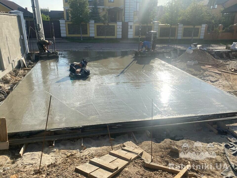 Бетонна площадка з затиранням затирочними машинами та облаштуванням швів, під ключ.