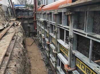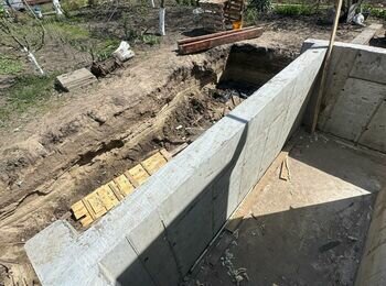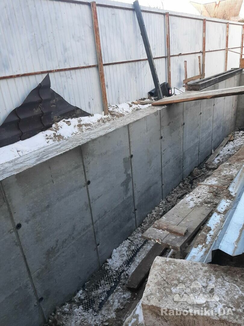 Улаштування підпорної стіни товщиною 400мм h=6000мм , 700 м.куб бетону