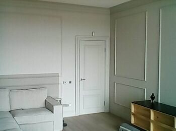Дефектовка ранее пошпаклеванных потолков, стен с последующей покраской безвоздушным способом. Некоторые помещения необходимо пошпаклевать. Краска sadolin extramat. Три квартиры по 330м2, два подьезда в 4 этажа.