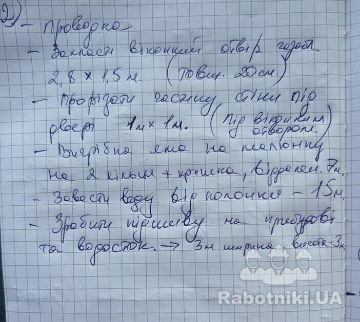Матеріали на обʼєкті. Житло надається. Потрібно зробити прибудову 3х2,5, встановити 2 каналізаційних кільця і підвести до прибудови. Детальний опис робіт на скрінах(фото)
