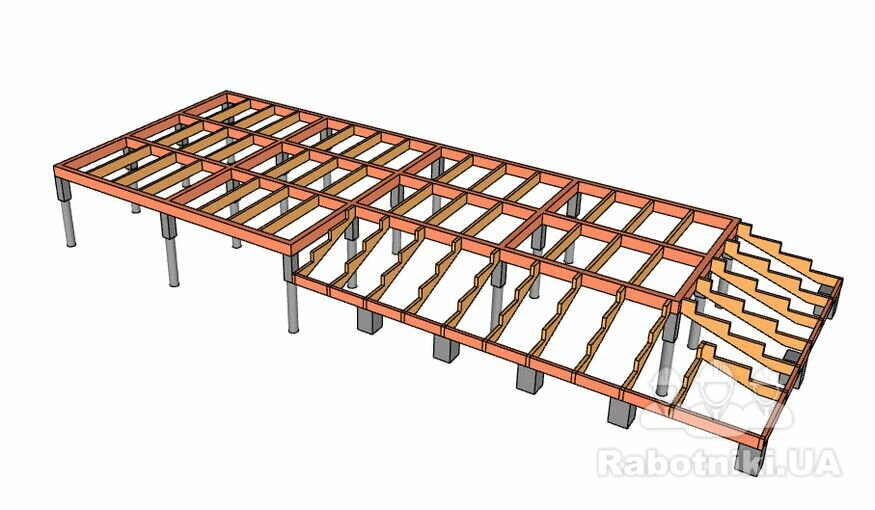 Підготовчі роботи: геотекстиль, бетонування свай, виготовлення каркаса за кресленням, укладання терасної дошки