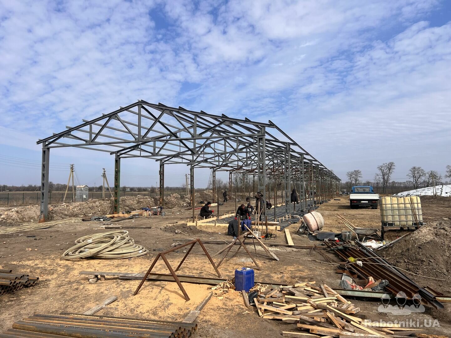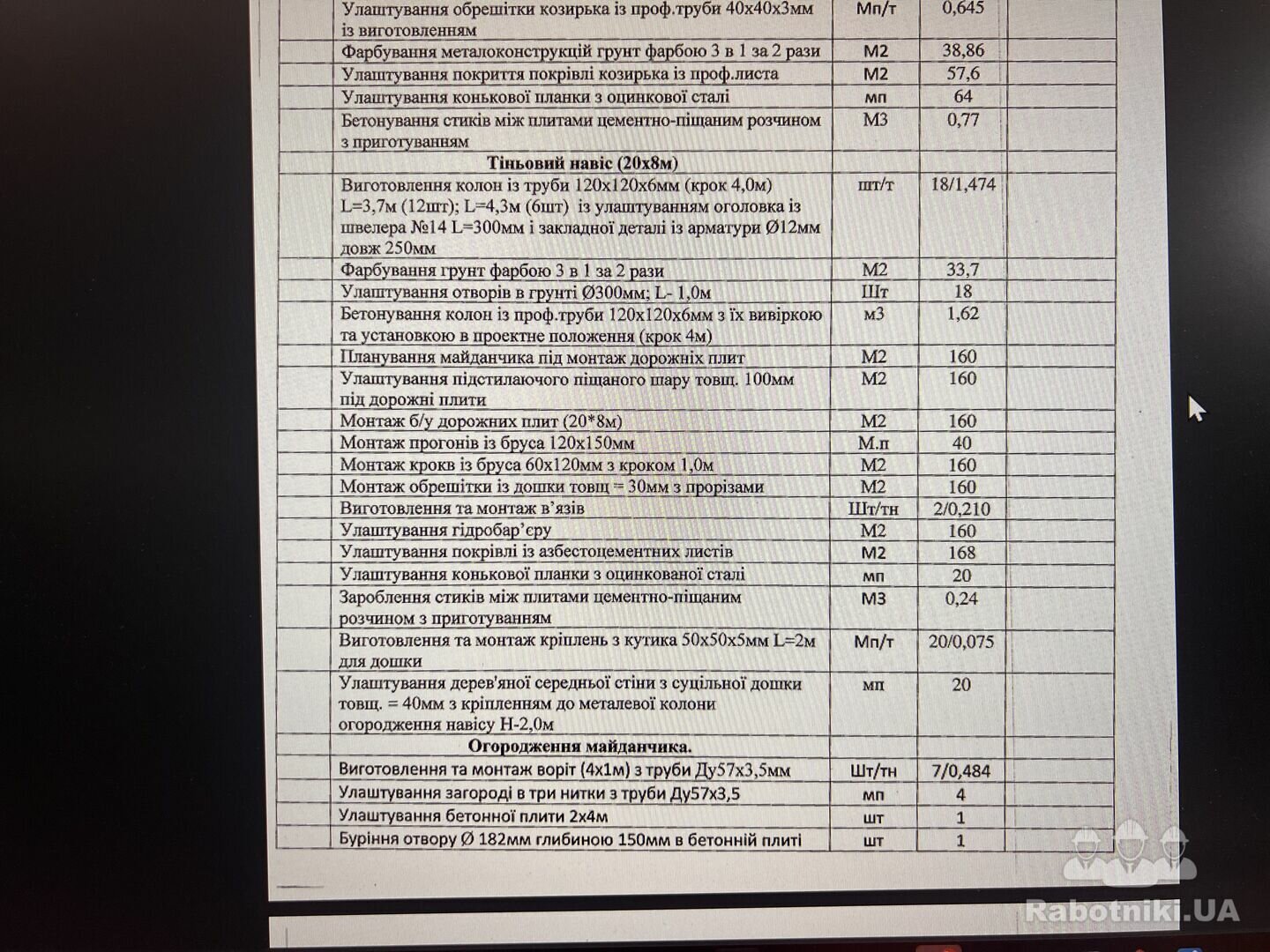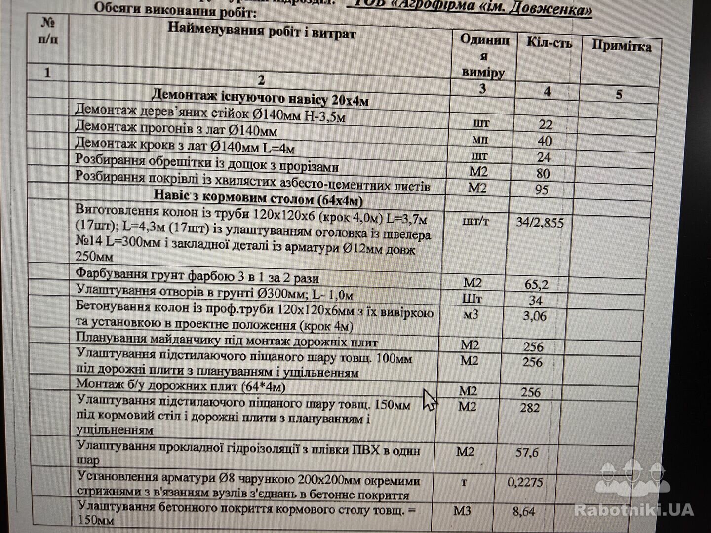 Потрібно провести будівництво площадок для утримання корів з кормовим столом та тіньовими навісами. Всі матеріали замовника деталі по телефону.