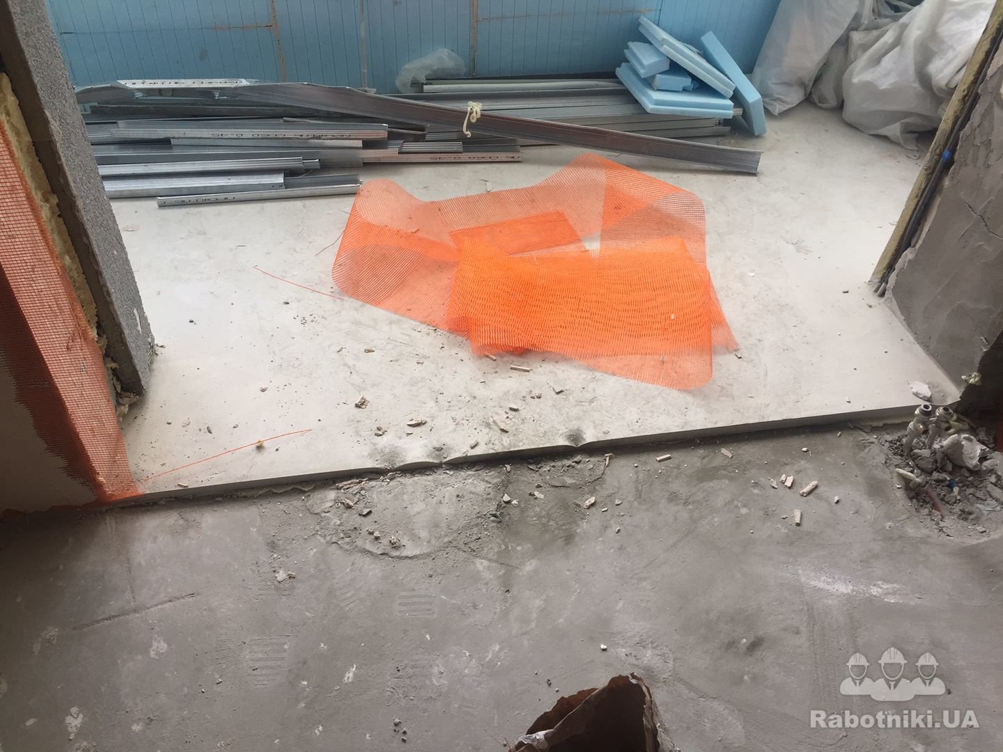 Необходимо снять слойки стяжки около 3 см на лоджии над теплым полом (электро) до уровня комнаты.