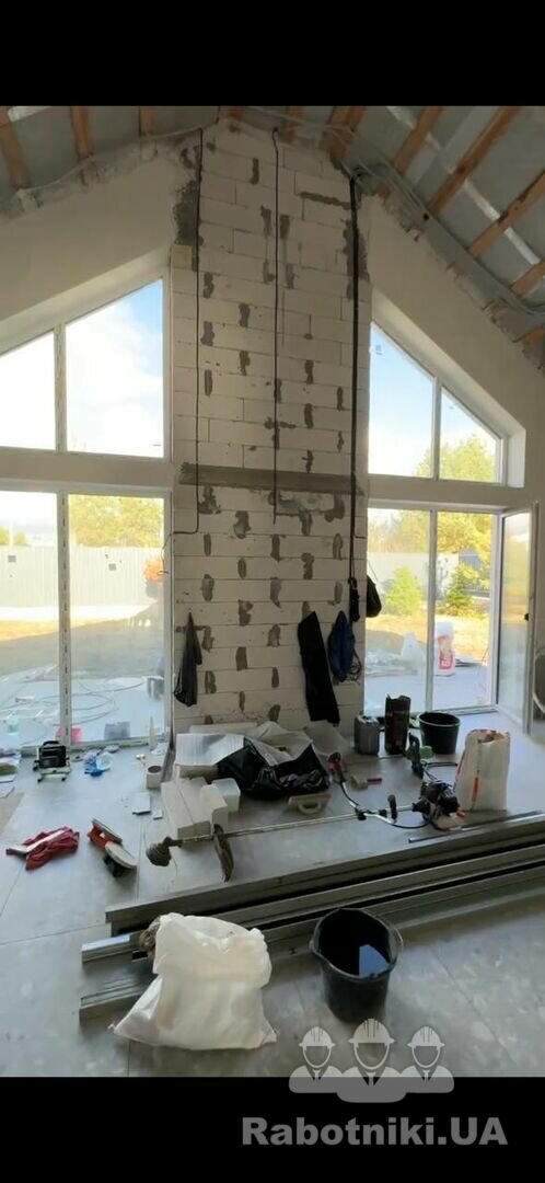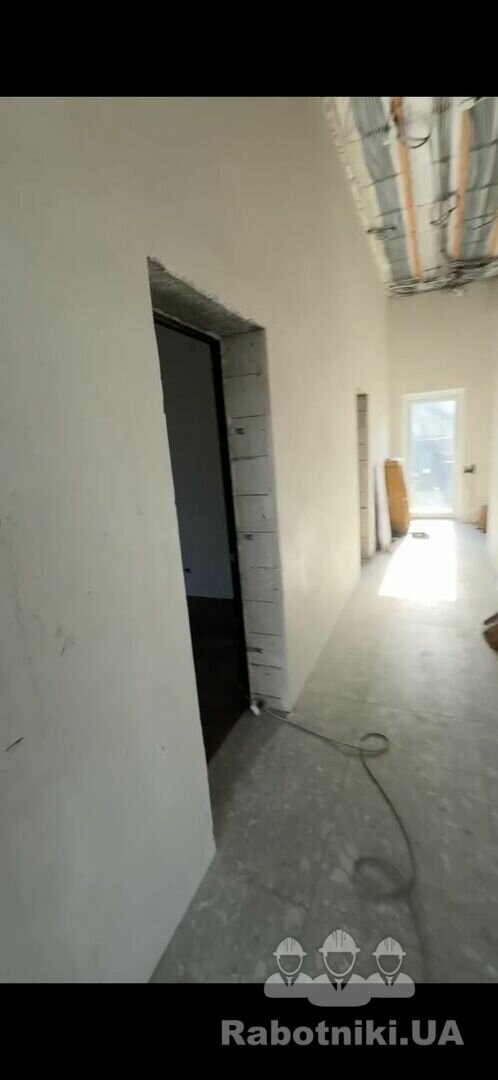 Будинок 100кв у віті поштовій, потрібно зробити відкоси дверей прихованого монтажу, підготовка стін під покйлейку шпалер, підготовка стін під фарбування, гіпосокартонні роботи.