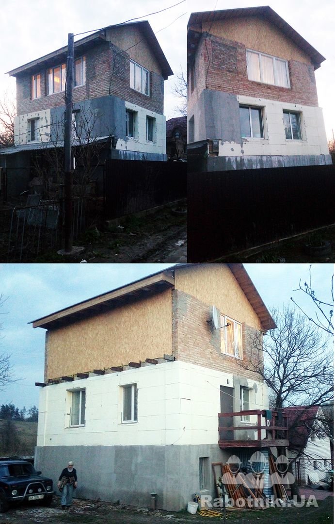 Третий зтаж - пенопласт, дюбиление, армировка, покраска(67м2.), и второй этаж - дюбиление, армировка, покраска (пенопласт наклеен)(около 70м2.)