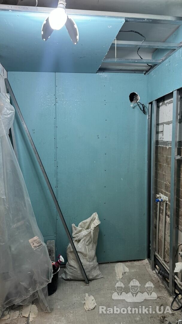 Акуратно зняти гіпсокартон (стеля та стіна у ванній).