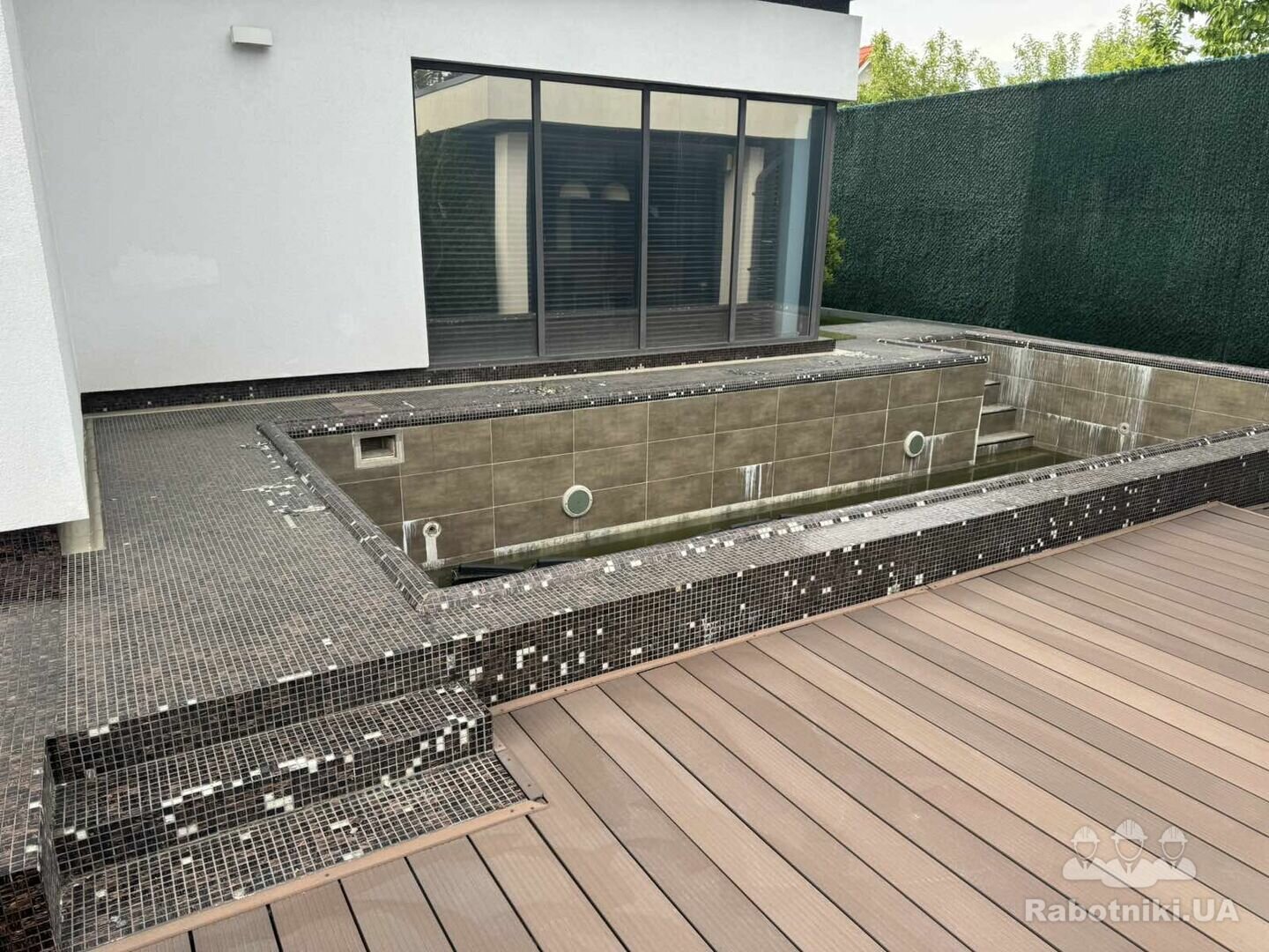 Потрібно покласти стяжку та вкласти мозаїку.