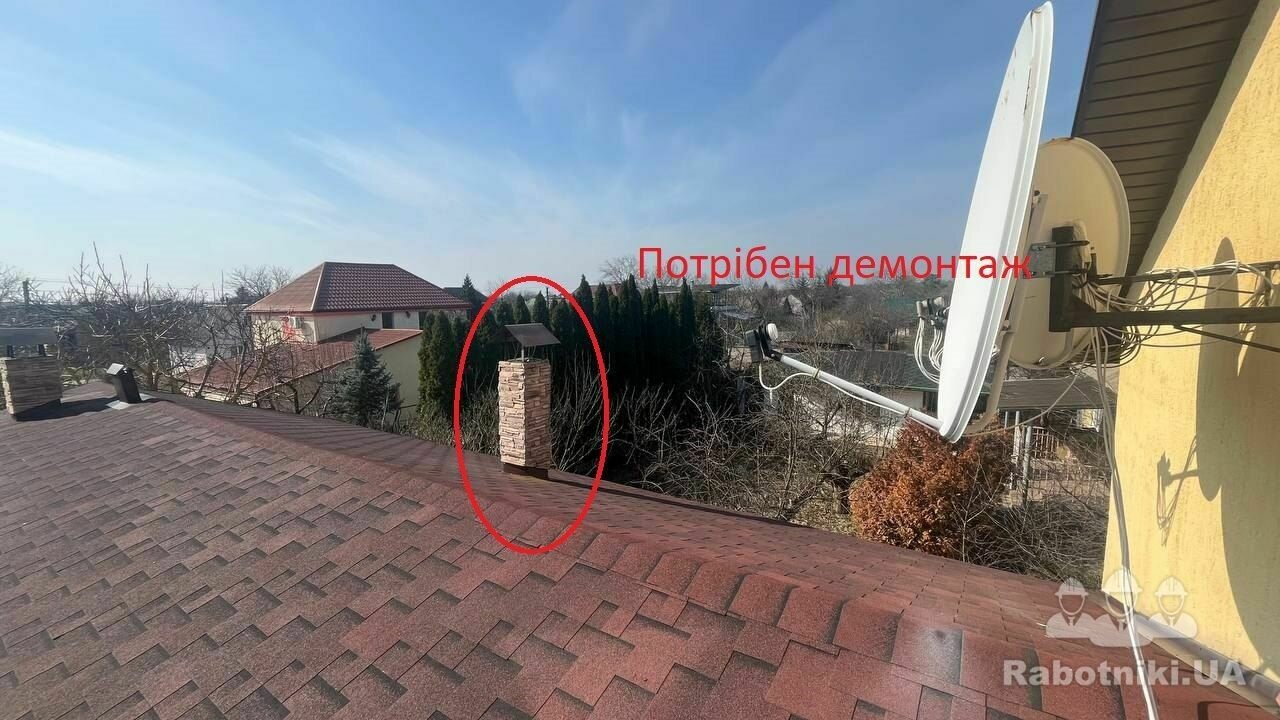демонтажа небольшой трубы (700х30х30) на крыше заделка отверстия (мягкая черепица) за-под-лицо Есть фото