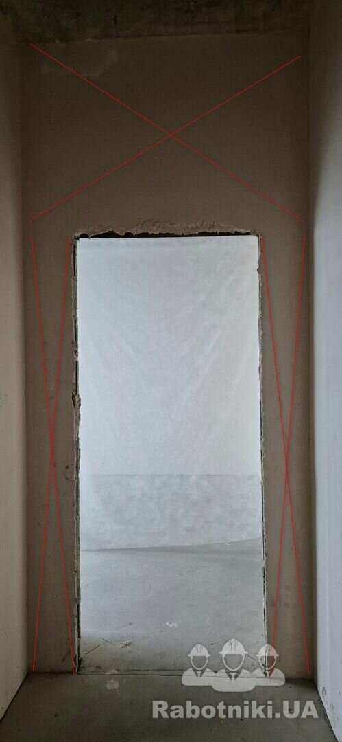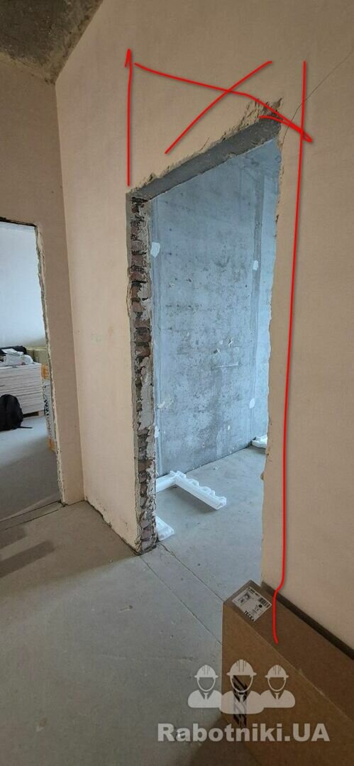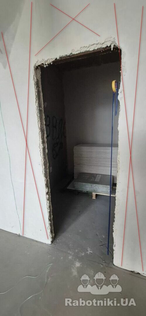 4) не обовязково, але за можливості і наявності інструменту вирізати новий дверний проєм. Лише за всіх необхідних попередніх уріплюючих процедур. можиливості заклади перемички.