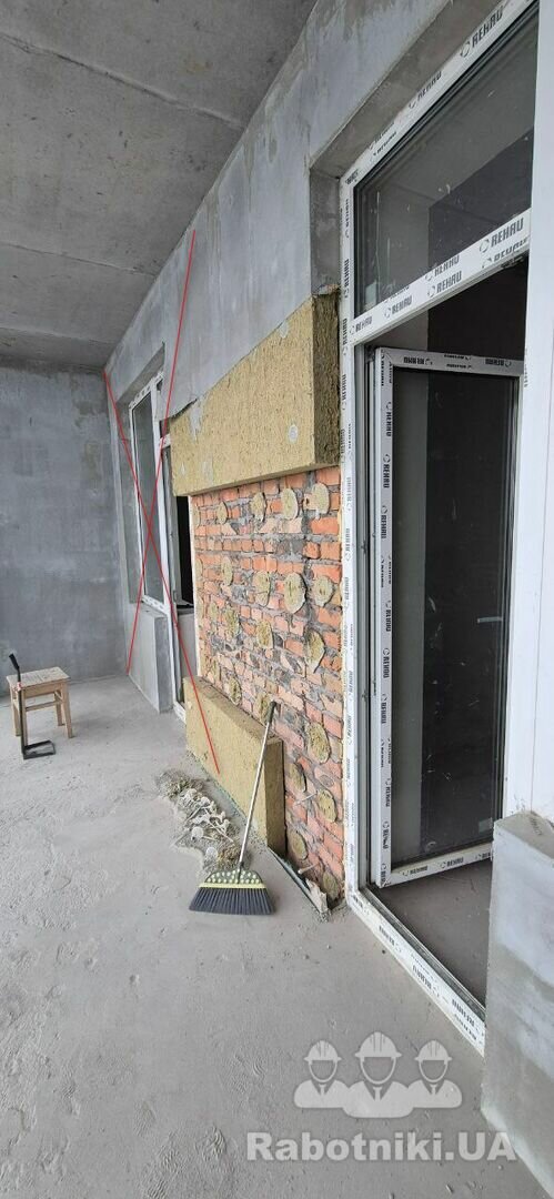 2) розширити дверний пройом до бетонної прили перекриття. 2 шт по 1м.кв кожний червона цегла;