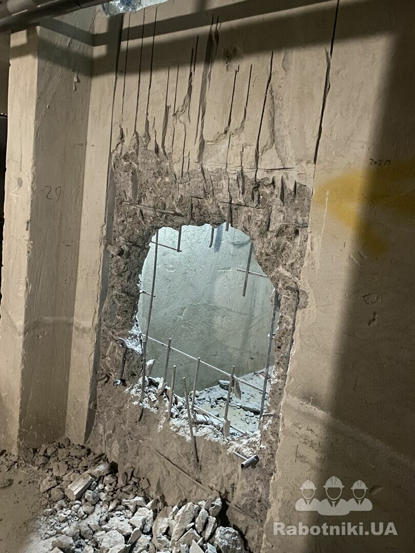 Демонтаж жб стены в подвале, стена не несущая, поэтому переживать за конструкцию не стоит, ответственность вся на заказчике.