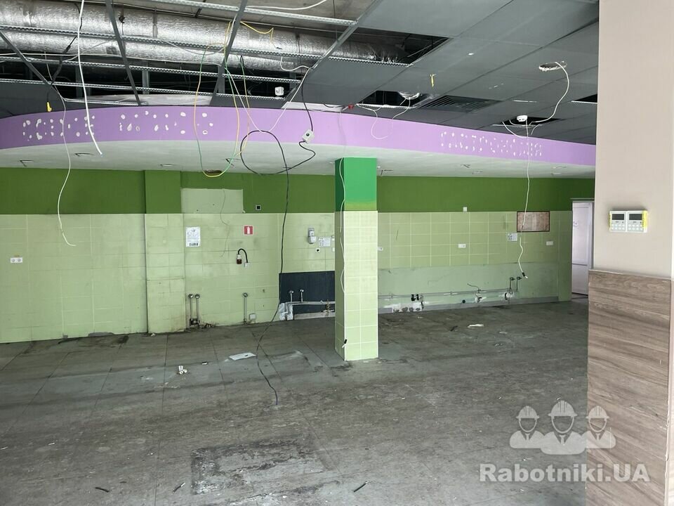 1. демонтувати підвісну стелю армстрон, склавши її для подальшого нранспортування -200 квадратів попередньо, самі квадрати майже всі вийняли, залишилось кріплення;