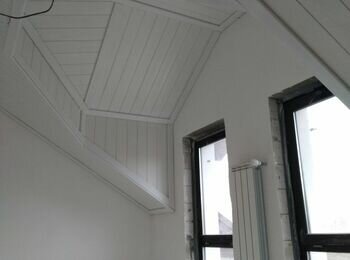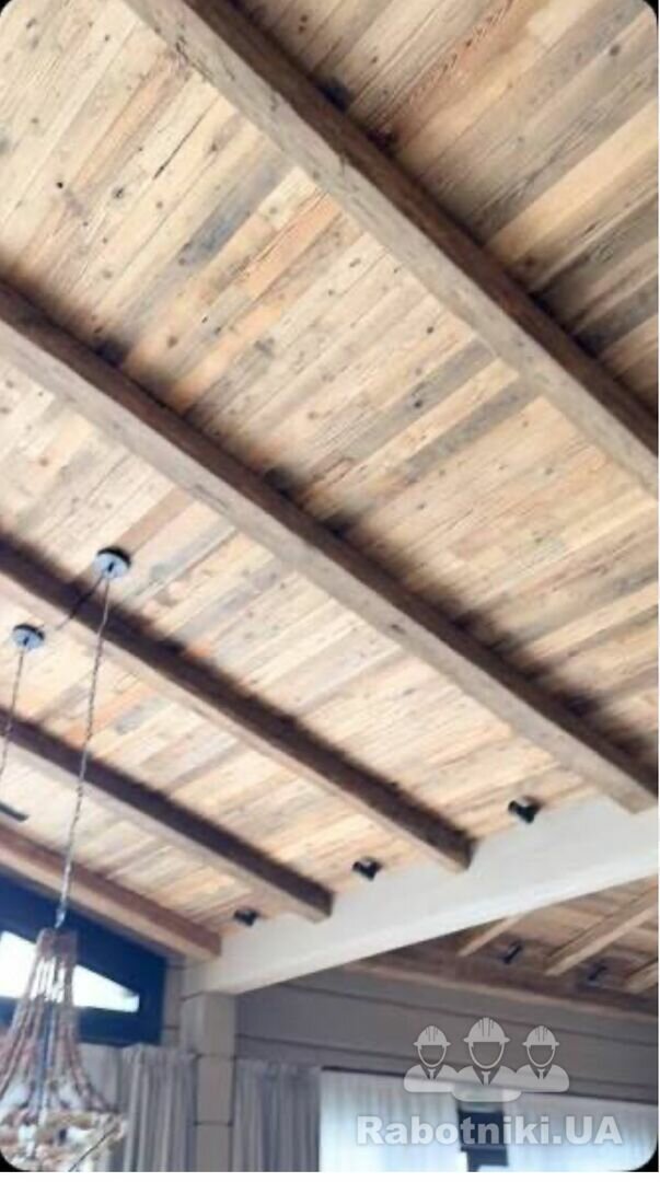Потрібно по існуючим балках покласти деревʼяний потолок.Буде використовуватимь дошка для підлоги товщиною 35 міліметрів.