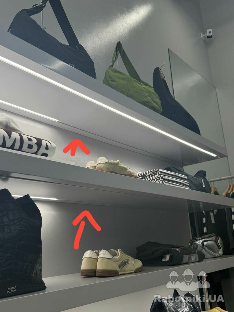 Необхідно провести діагностику та ремонт LED стрічок під навісними тумбами та неонового контуру на світлодіодній частині вітрини в магазині. За потреби замінити пошкоджені частини.