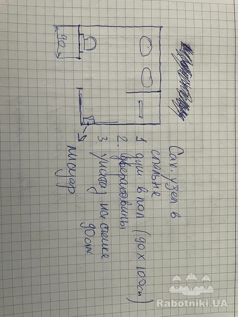 Сделать дизайн сан узла. Внутренние размеры ш*д: 2.64 * 2.37(кирпич без штукатурки) Перепланировку делать не надо, оставить существующую. Обмер делать не надо. Добавил референс для визуальной части и эскиз. Подбор плитки и мебели из сайта Агромата.