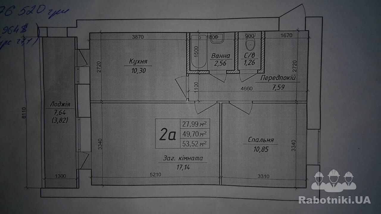 Указана приблизительная стоимость из расчета кв.м, в среднем 260 грн за кв.м., без учета материалов