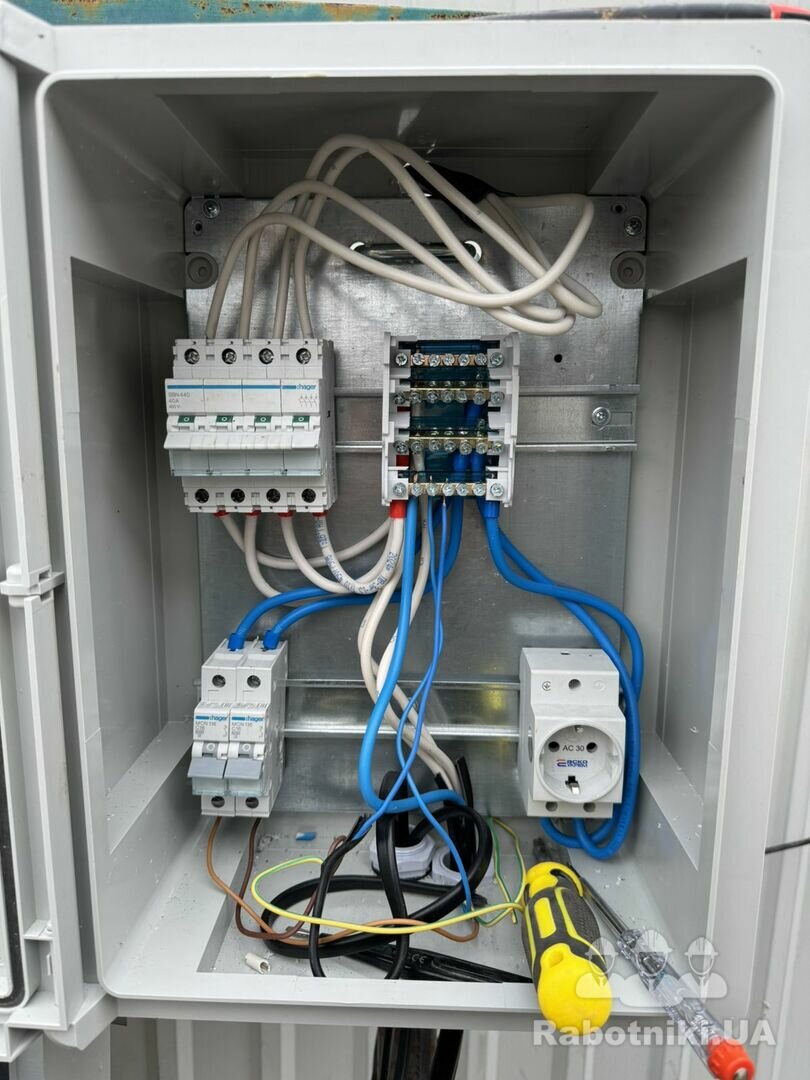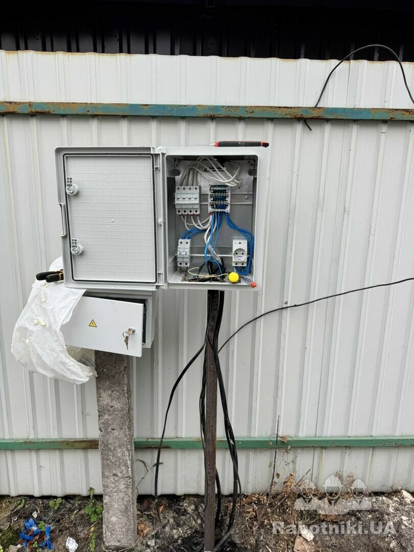 Від стовпа з вулиці заходить на территорію (на фото маленький сірий ящик) , від нього вже заведено в будинок.