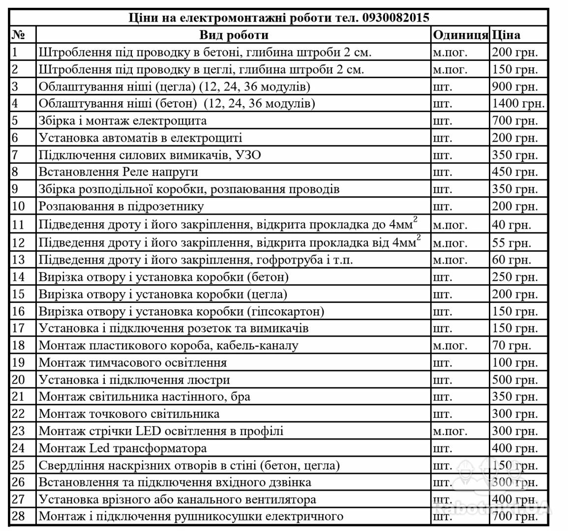 Цікавить ваші замовлення Демонтажні роботи та електрика.